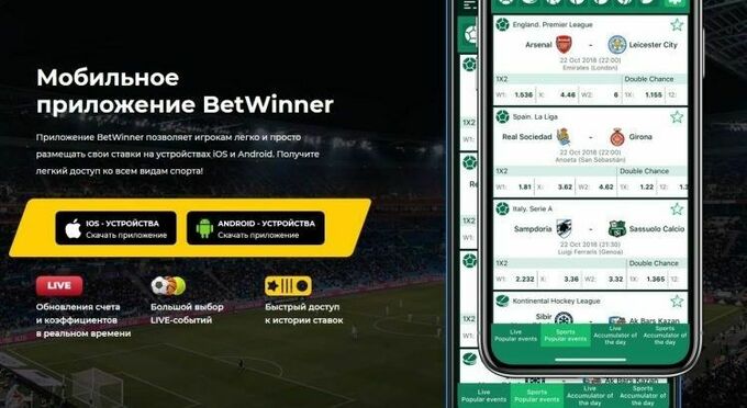 Чтобы спортивные ставки с высокими коэффициентами были доступны в любом месте, скачайте и установите на смартфон приложение Betwinner для Android. Для этого зайдите на официальный сайт букмекерской конторы, нажмите на кнопку «Приложение для смартфонов», которая располагается в верхнем левом углу сайта букмекерской конторы. Затем установите скачанный файл и запустите приложение. Не забудьте получить бонус за выполненные действия.